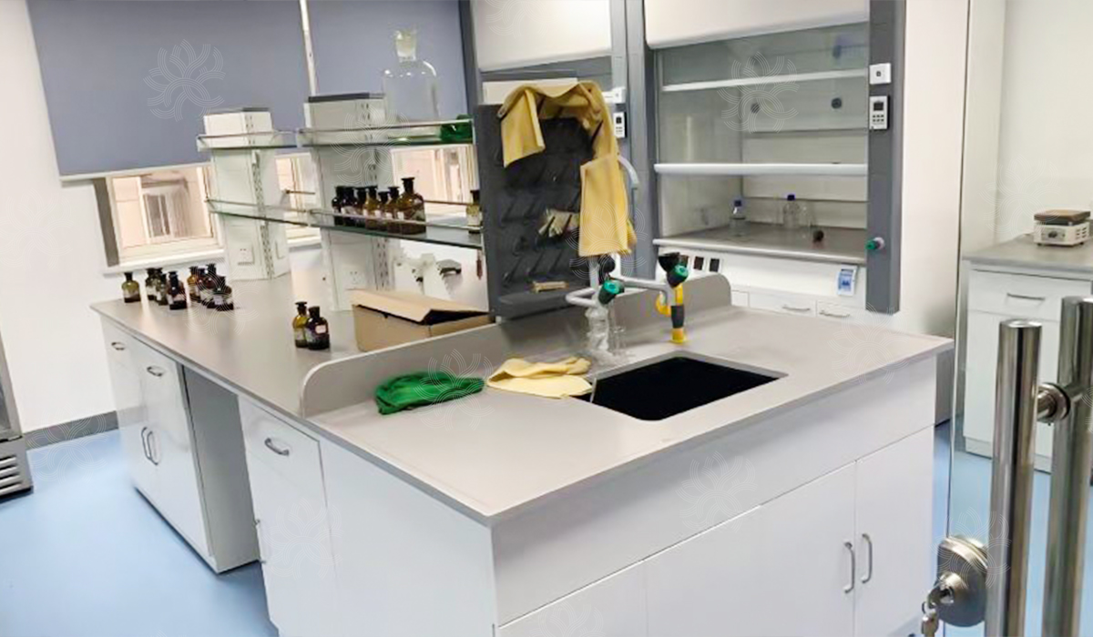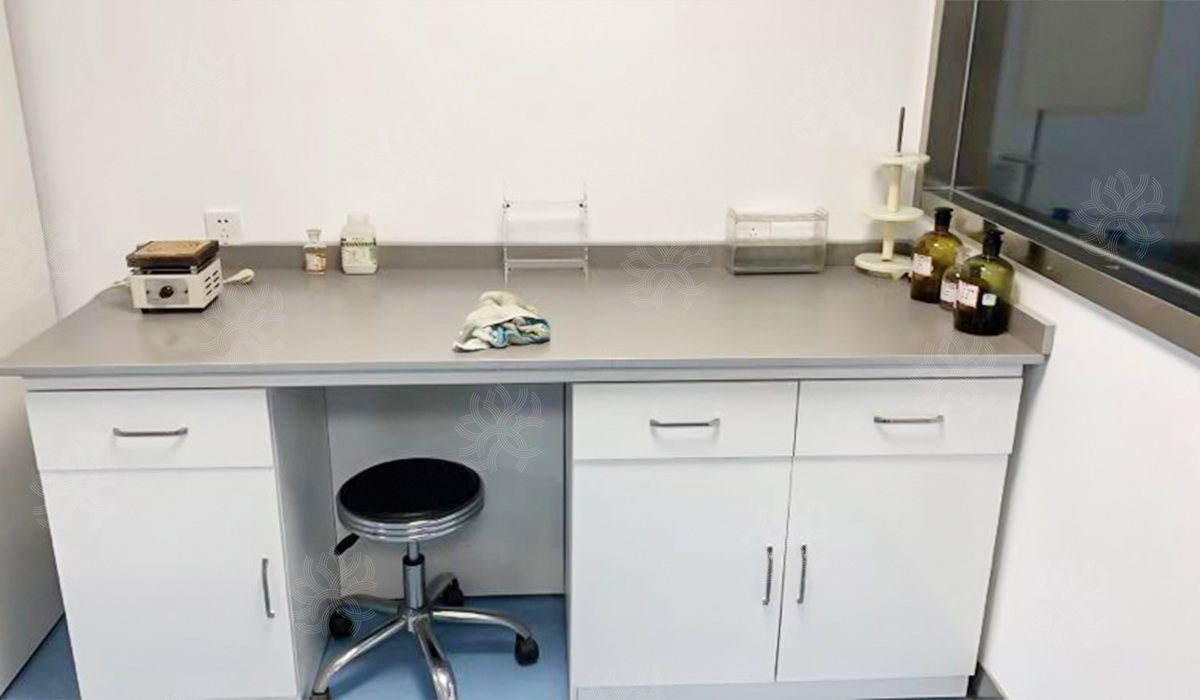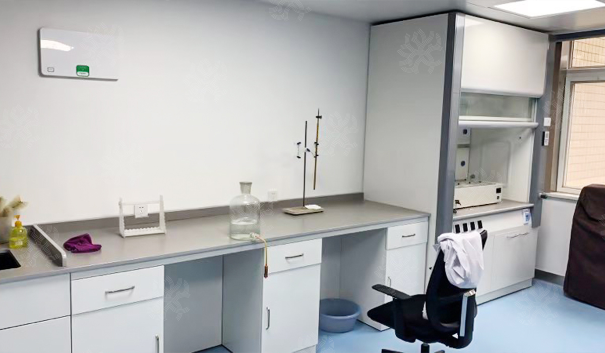 项目说明:榕德博雅斑点灰陶瓷板产品,应用于全部实验室实验台台面及通风柜台面