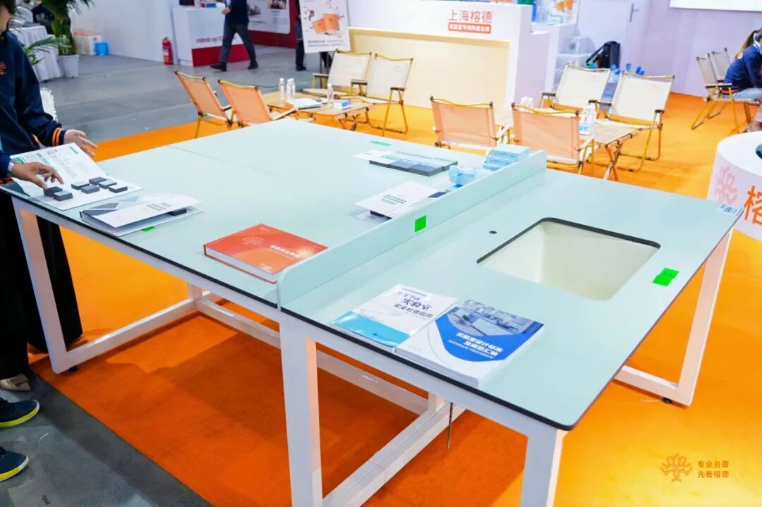 展会现场,上海榕德展出了旗下榕德及盛德瑞两组实验室专用陶瓷台面产品,高品质、高颜值、高实用性的实验室台面产品一经亮相就成为整个展位的焦点。