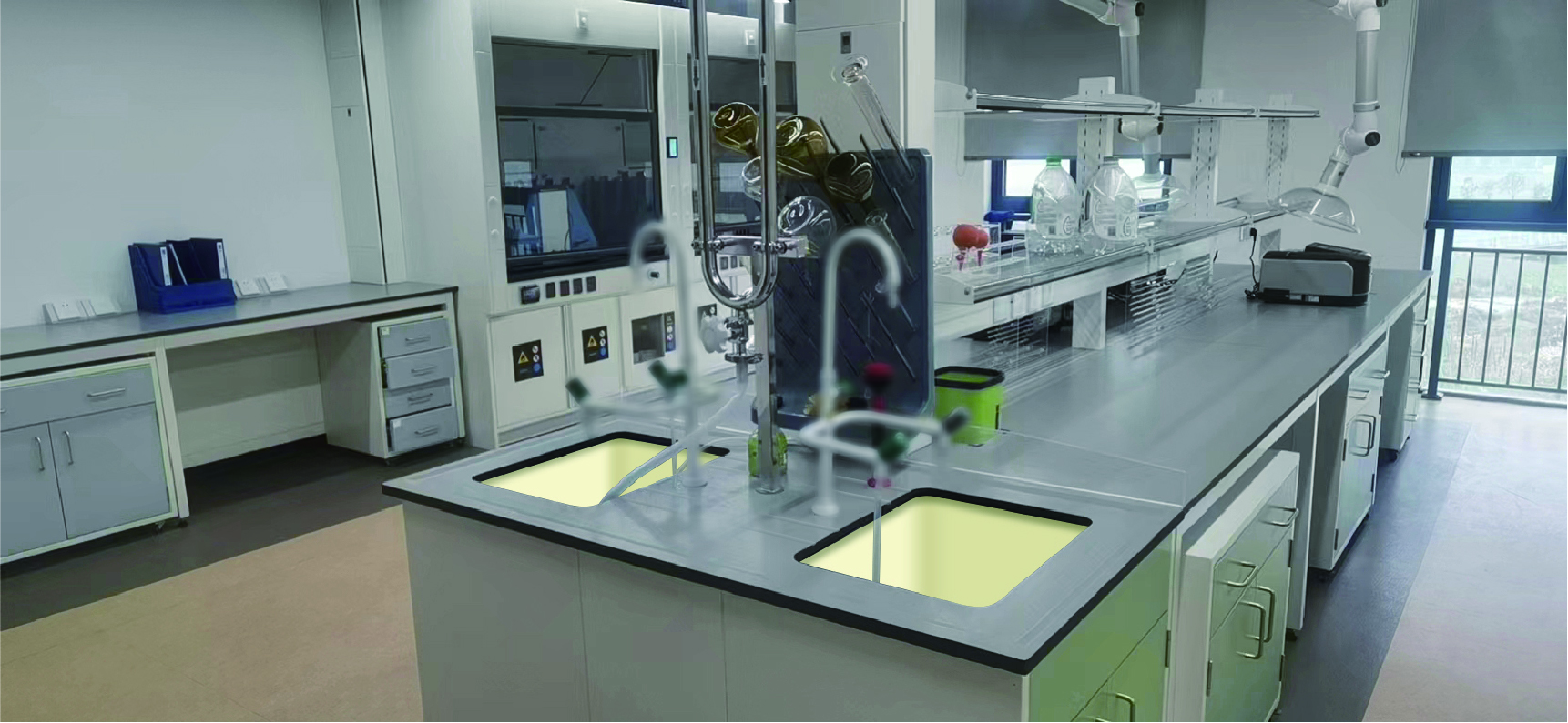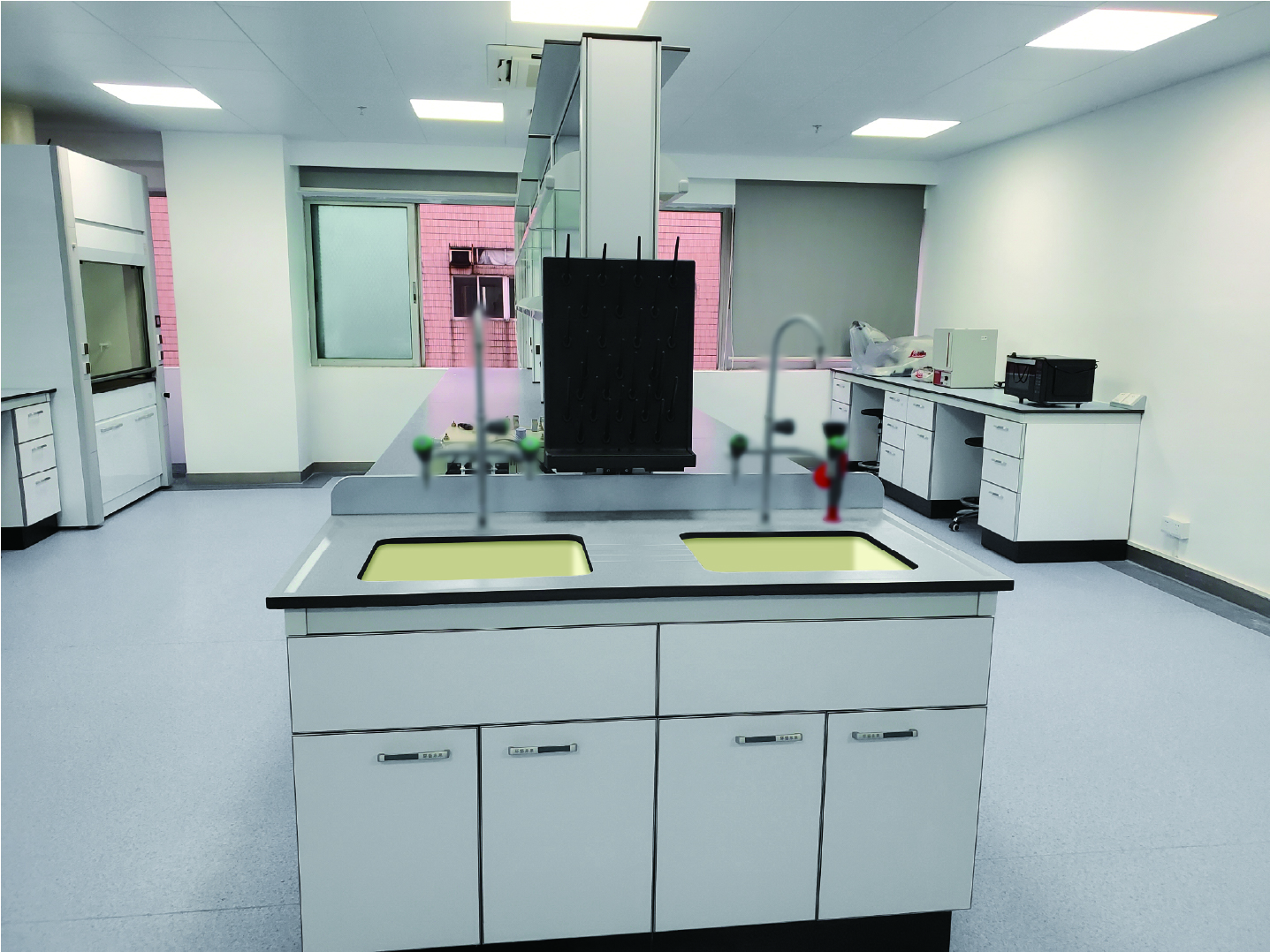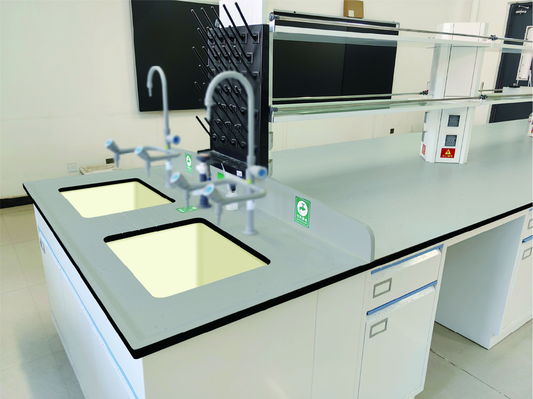 支持两人同时操作、互不干扰,大幅提升效率,特别适合高校实验室及科研场景。其设计的条形沥水槽能有效沥干清洗后的器皿积水,并防止器皿滑动。